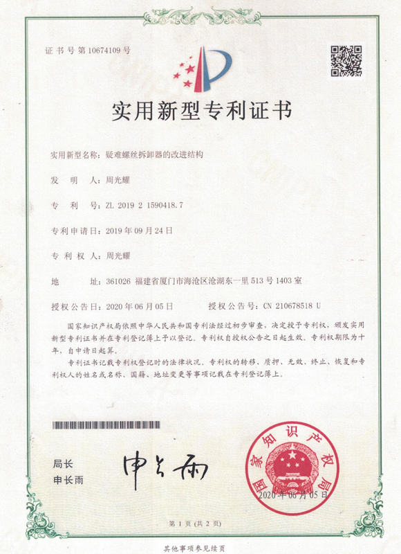 自主知識產權,無需焊接、不用切割、不破壞任何部件,可無損拆缷市面上所有的防盜螺絲以及平面的普通螺絲。